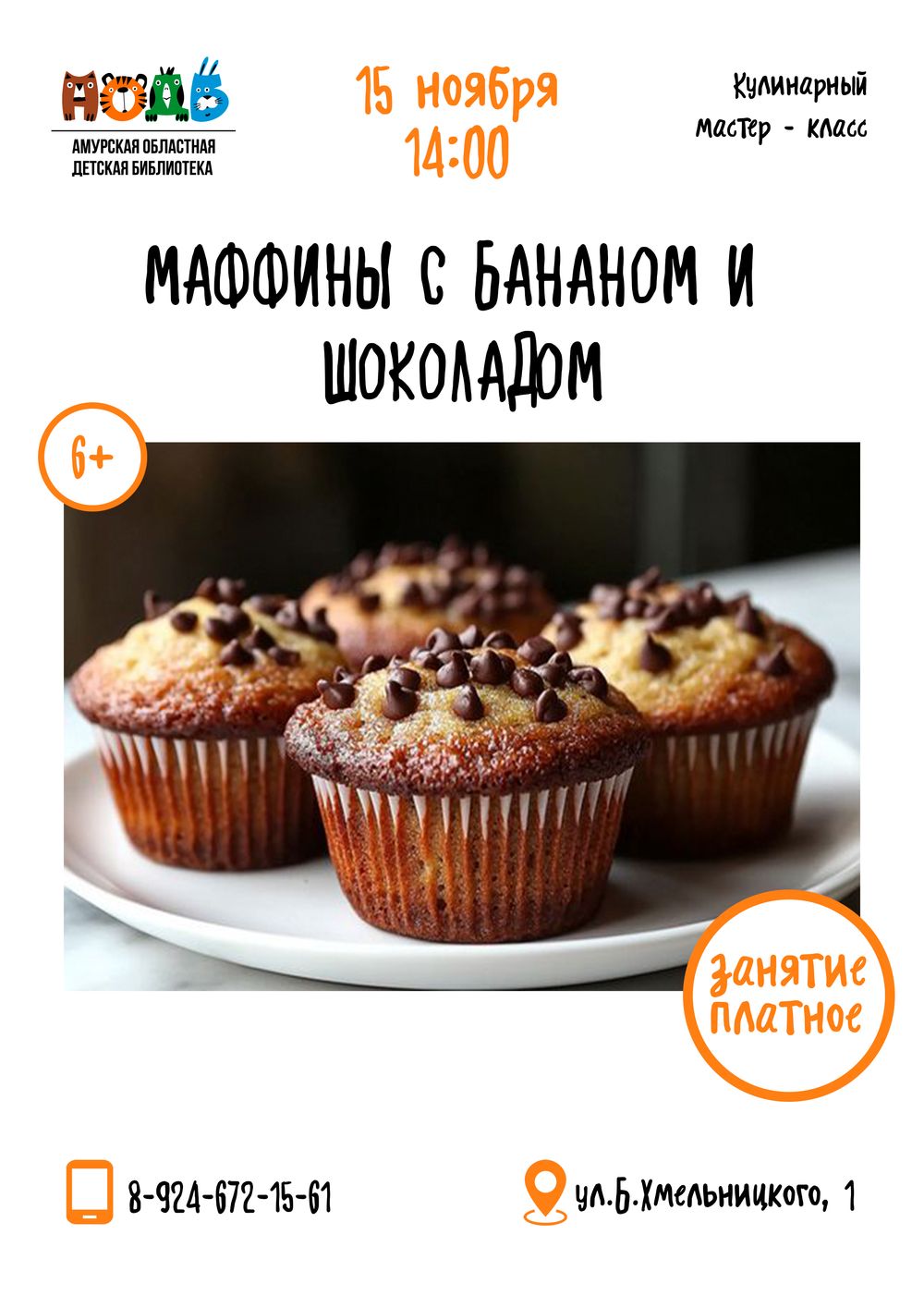 15 ноября приглашаем на занятие, где с нуля приготовим тесто для маффинов, приготовим начинку и испечем очень вкусные маффины. Внутри много бананов и шоколада. В перерыве активно проведём время. ...