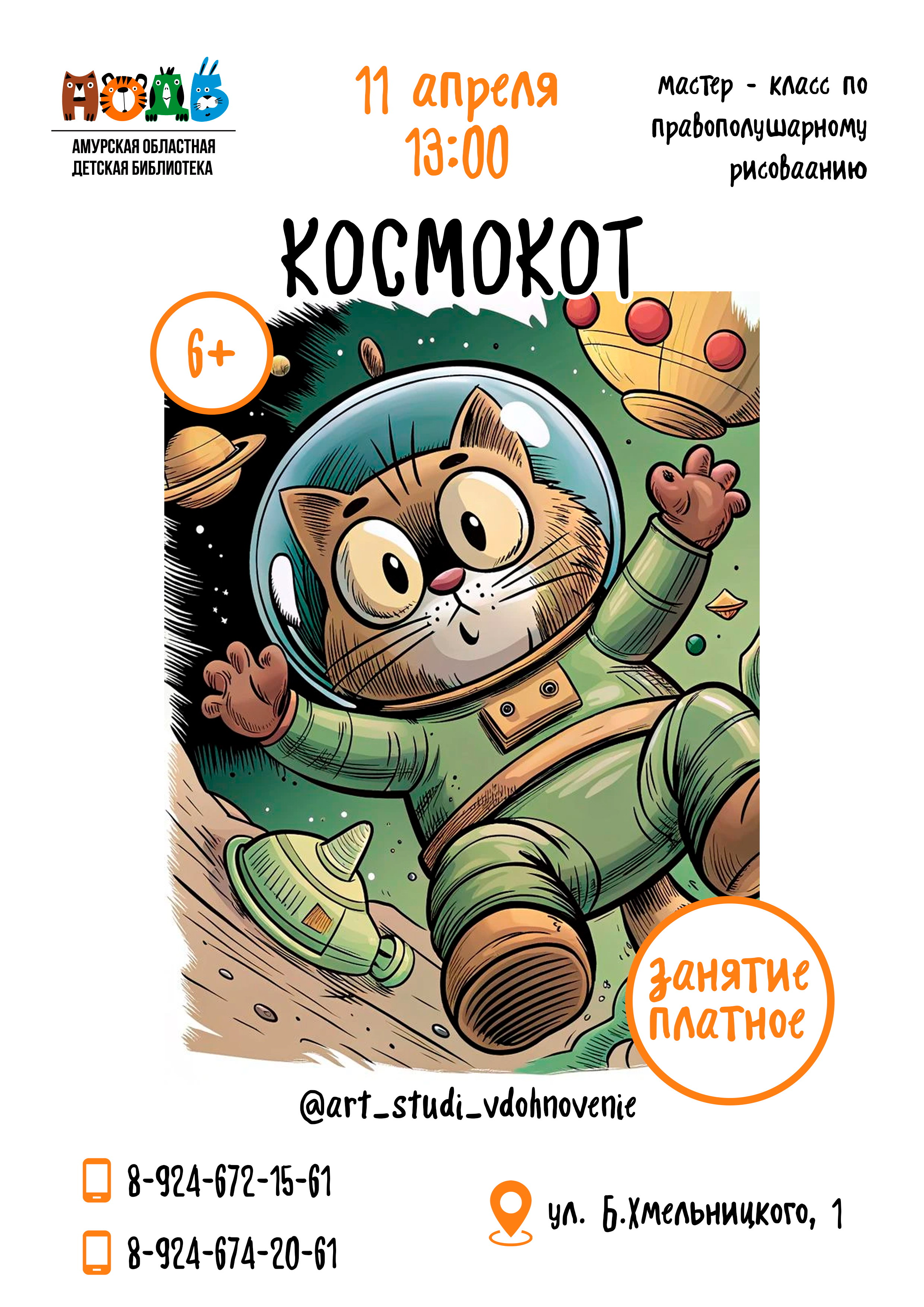 11 апреля приглашаем ребят и взрослых на мастер - класс по правополушарному рисованию «Космокот» (6+). Никаких особенных художественных способностей от участников не требуется! Использоваться буд...