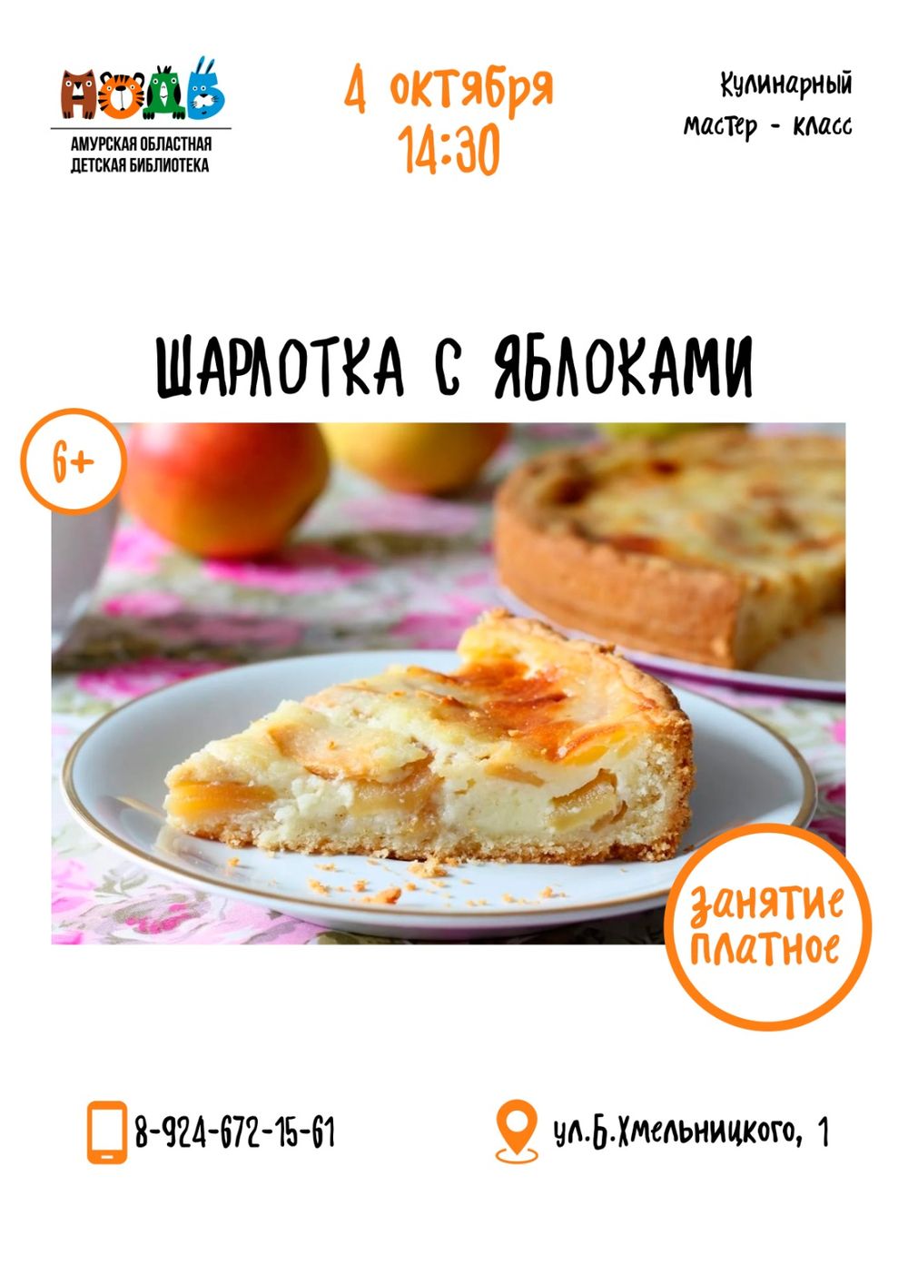 4 октября в приглашаем детей на кулинарный мастер-класс «Шарлотка с яблоками» (6+). Ждём ребят мастер-классе, где под руководством хозяюшки Маши каждый сделает свою собственную шарлотку с яблоками...