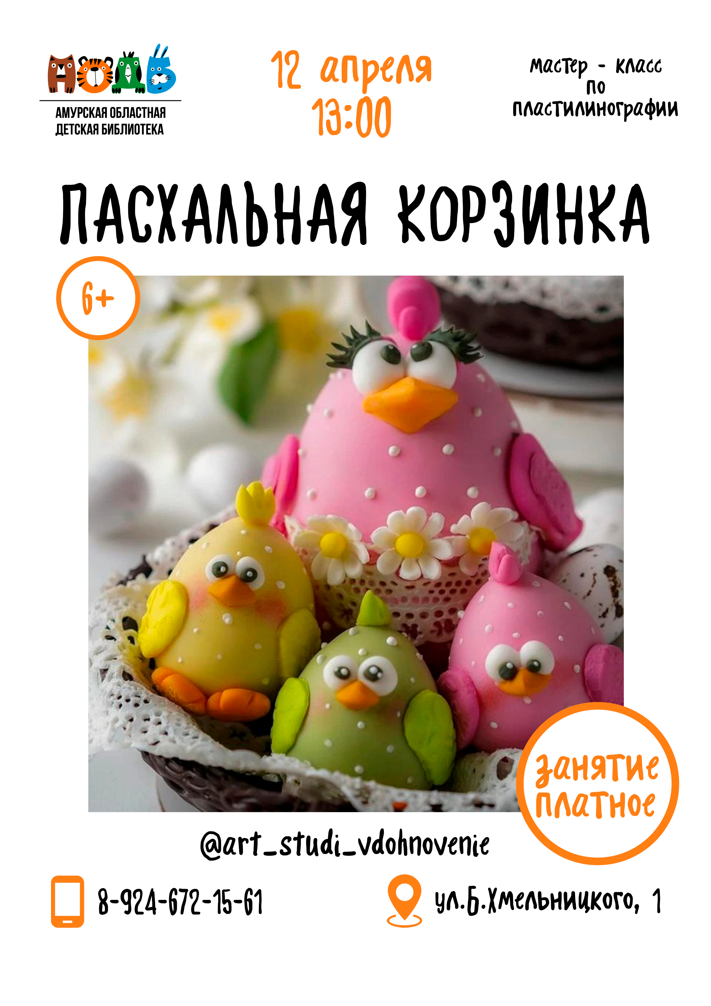 Приглашаем детей на мастер-класс по пластилинографии «Пасхальная корзинка» (6+). БУДЕМ РАЗВИВАТЬ: - мелкую моторику; - сенсорный интеллект; - критическое мышление; - фантазию и воображение...