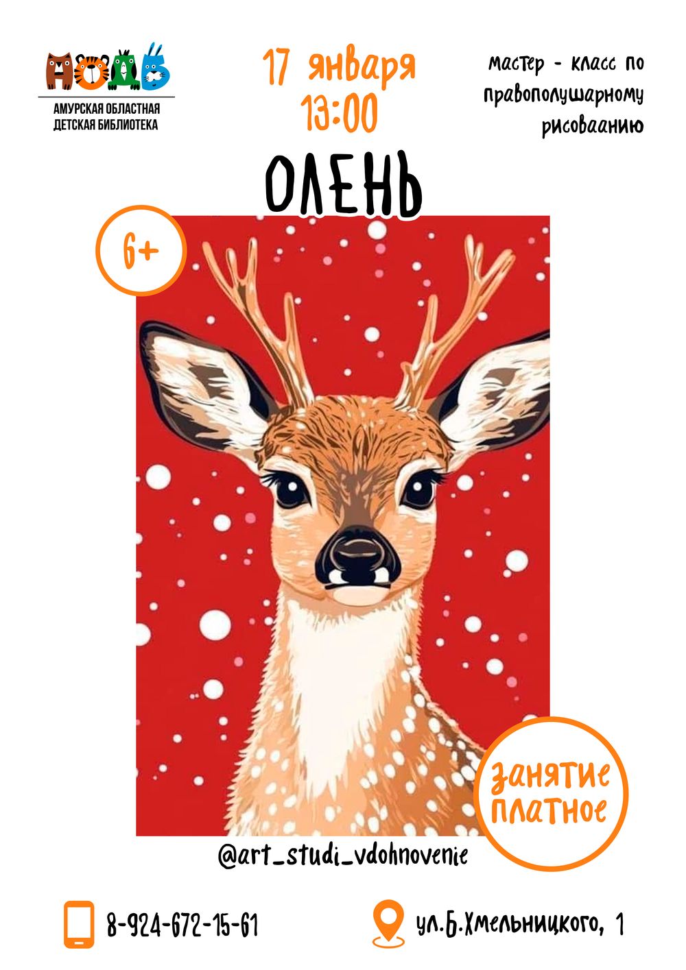 17 января приглашаем ребят и взрослых на мастер - класс по правополушарному рисованию «Олень» (6+). Никаких особенных художественных способностей от участников не требуется! Использоваться будут ...