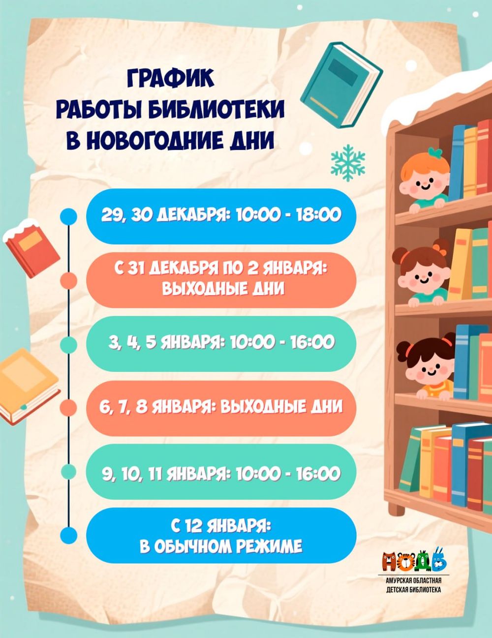Внимание! Амурская областная детская библиотека приглашает ребят на новогодний утренник «Когда беда с часами приключилась»! Вас ждет новогоднее приключение со сказочными героями. Вместе с ними вы...