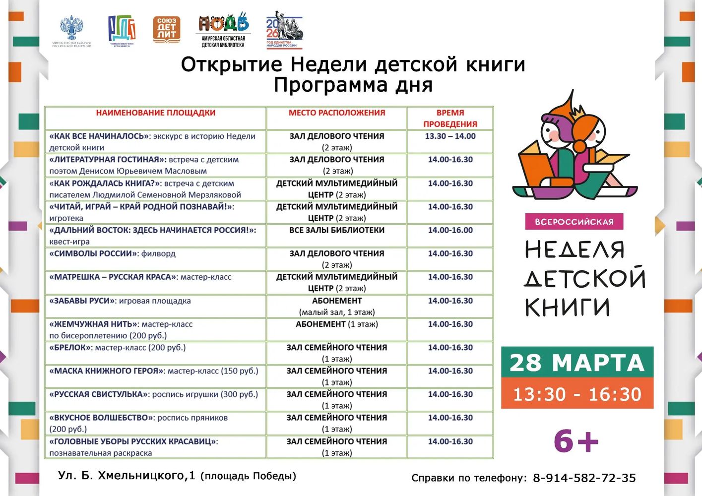 - Возрастное ограничение: 6+, тел.: 8 (914) 582-72-35
