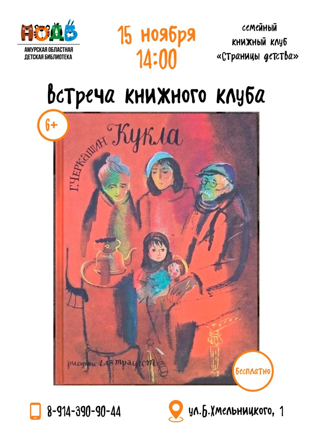 15 ноября участники семейного книжного клуба «Страницы детства» обсудят книгу Геннадия Черкашина «Кукла». Этот небольшой рассказ посвящён событиям Великой Отечественной войны, но в нём мы не найдём...