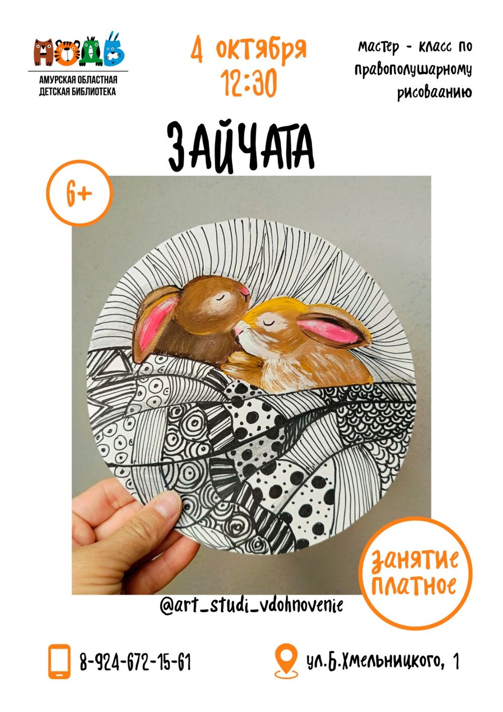 4 октября приглашаем ребят и взрослых на мастер - класс по правополушарному рисованию «Зайчата» (6+). Никаких особенных художественных способностей от участников не требуется! Использоваться буду...