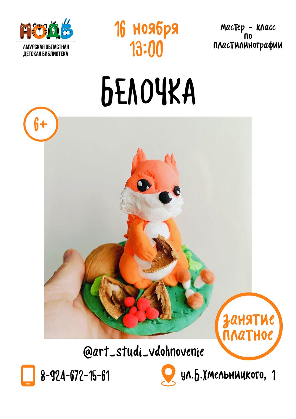 16 ноября приглашаем детей на мастер-класс по лепке из пластилина «Белочка» (6+). БУДЕМ РАЗВИВАТЬ: - мелкую моторику; - сенсорный интеллект; - критическое мышление; - фантазию и воображени...