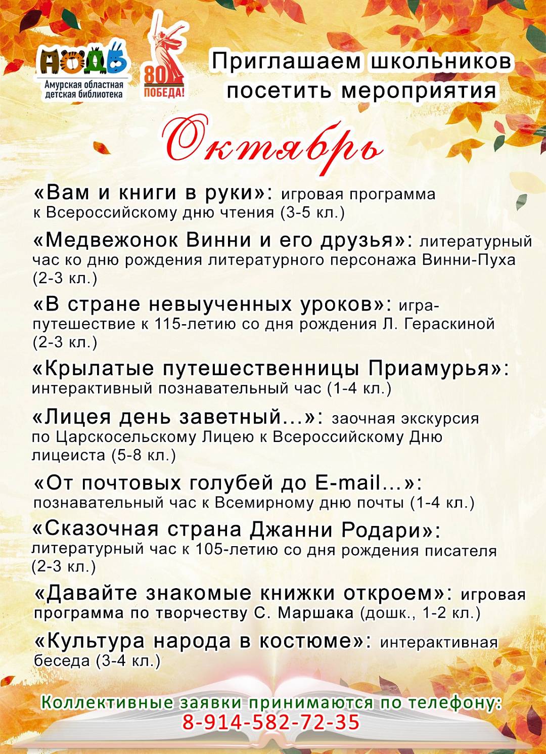 Дорогие друзья, ждём вас на познавательные мероприятия в октябре!