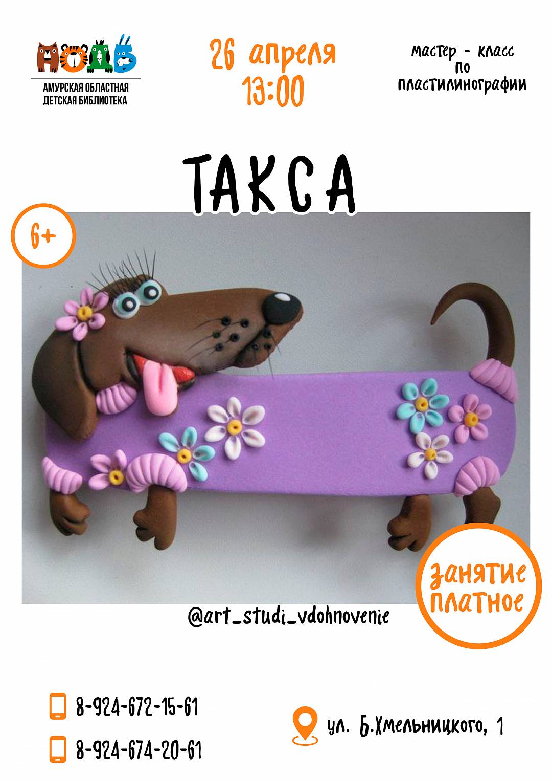 Приглашаем детей на мастер-класс по пластилинографии «Такса» (6+).